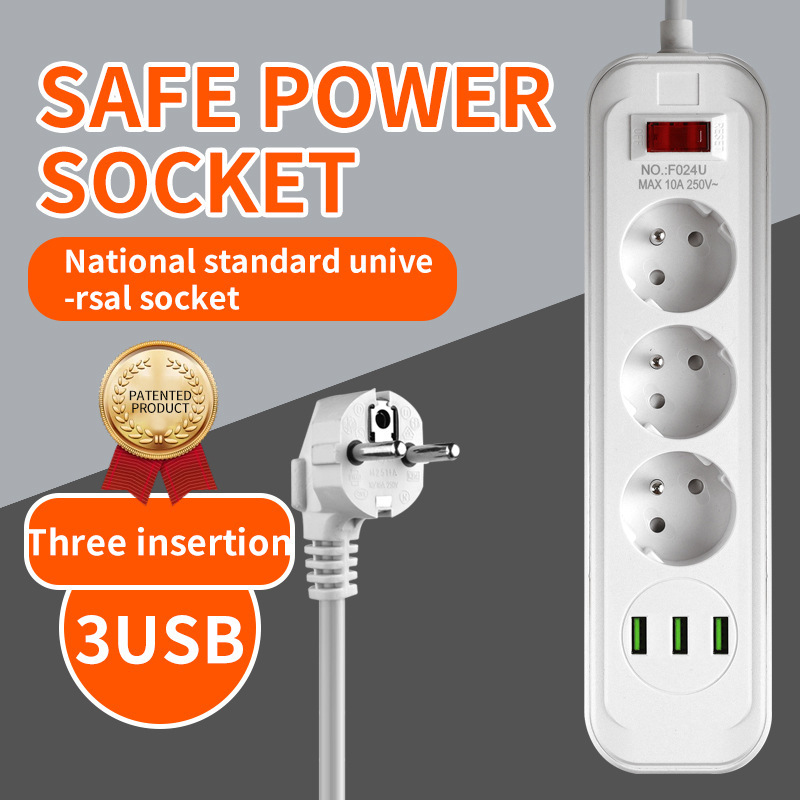 Power Adapter 3 Socket 2USB 1TC 3M